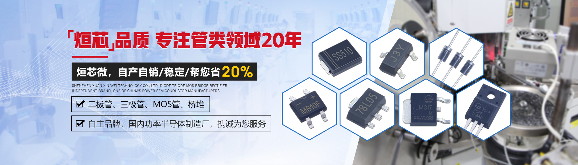深圳市烜芯微科技有限公司是一家集研發(fā)、生產、銷售于一體,專注于二極管、三極管,MOS管、橋堆等功率半導體領域發(fā)展的企業(yè)。采用國際領先的GPP芯片生產工藝及一心多Die高精密制造工藝,擁有功率半導體器件工程實驗室,全自動高精密生產設備,產品層層把控,全程可追溯,保障了每只產品的卓越品質。 產品封裝包括SMA,SMAF,SMB,SMBF,SMC,SOD-123,SOD-123FL,SOD-323,SOD-323FL,SOD-523,SOD-723,SOT-23,SOT-89,SOT23-3L,SOT23-5L,SOT23-6L,SOT-223,SOT-523,SOT-723,DO-41,DO-15,DO-27,DO-35,R-1,R-6,LL-34,LL-41,TO-277,TO-92,TO-92S,TO-92L,TO-126,TO-251,TO-252,TO-262,TO-263,TO-220,TO-220F,TO-247,TO-3P,TO-264,MBS,MBF,MBM,ABS,UMB,UMSB,DB,DBS,D3K,KBP,GBP,GBU,GBL,GBJ,KBL,KBU,KBJ,KBPC,KBPC6,KBPC8,KBPC-W,DNF,TSSOP-8,TSSOP-16,SOP-4,SOP-6,SOP-8,SOP-10,SOP-14,SOP-16,DIP-4,DIP-6,DIP-8,DIP-10,DIP-14,DIP-16,月產各封裝達6億只。 公司通過了ISO14001環(huán)境管理體系認證,產品均獲得了ISO9001質量體系認證、UL、SGS等認證,符合歐盟最新RoHs指令。擁有和致力于烜芯微/XXW自主品牌產品的推廣,提供技術支持,選型替換,cost down方案及擁有專業(yè)的生產管理團隊和銷售團隊,保證了供貨穩(wěn)定及售前選型服務等問題。 公司產品廣泛應用于開關電源、適配器、逆變器、控制器、汽車電子、家用電器、通訊設備、無線充、鋰電池保護板、驅動電機、安防警報、太陽能光伏產業(yè)等多個領域。取得了國內外眾多品牌大廠的認可與合作,我們將堅持奉行“烜芯品質,誠信經營,合作共贏”為公司經營理念!竭誠為新老客戶提供優(yōu)質的產品及服務。